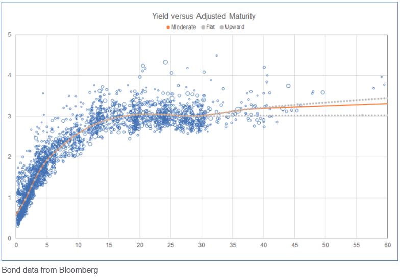 The Terry Group’s December portfolio includes roughly 100 bonds with maturities beyond 30 years, about 20 of which have maturities beyond 40 years. This information, though limited, enables a range of possible extrapolation approaches: